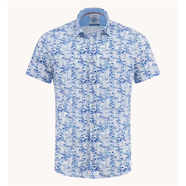 Discover the perfect blend of style and comfort with the A Fish Named Fred Saling Boats Short Sleeve Shirt in Blue. This eye-catching shirt features a unique printed shirt design that effortlessly combines sophistication with a playful spirit, making it ideal for both casual outings and more formal occasions.