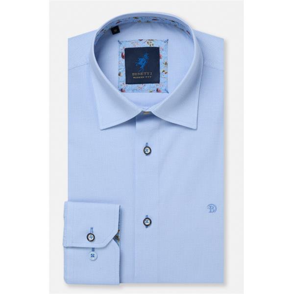 Discover the impeccable style and comfort of the Arlo Benetti Shirt Sky. Designed for the modern individual, this shirt features a micro-diamond print that adds a stylish and unique appearance, making it a versatile addition to any wardrobe.