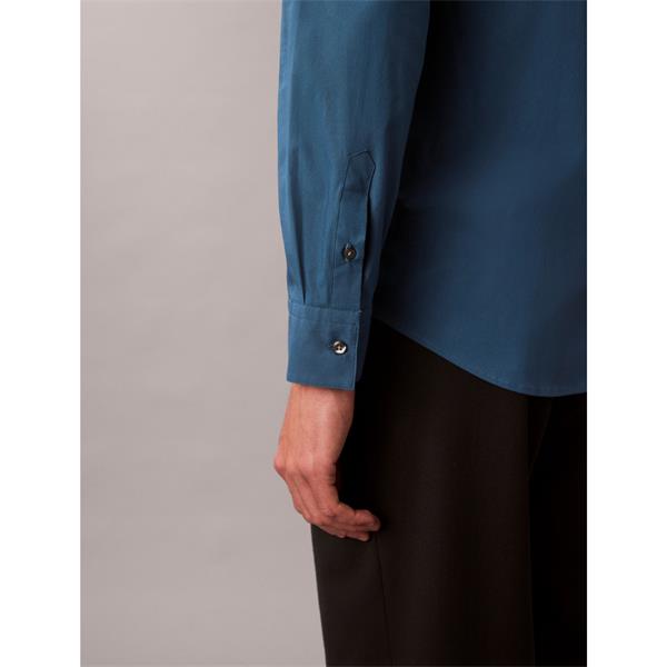 Introducing the Calvin Klein Solid Stretch Shirt in Blue, a perfect blend of style and comfort tailored for the modern individual. This shirt is designed to elevate your wardrobe with its timeless design while providing exceptional flexibility and ease of movement.
