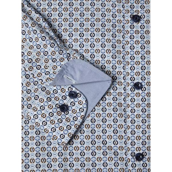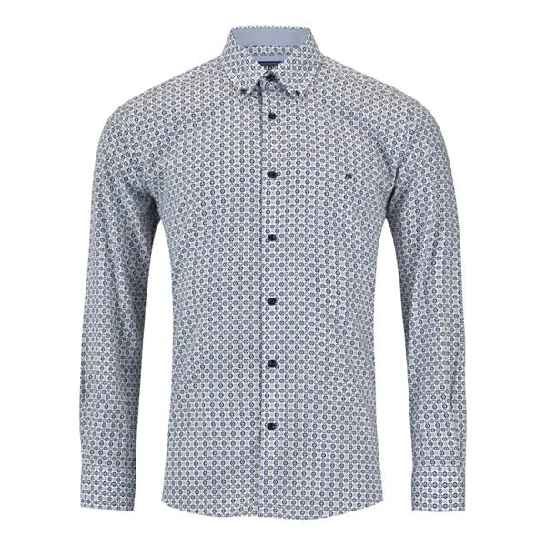 Update your wardrobe with the Drifter Print Shirt in Blue, where modern style meets comfort and versatility.