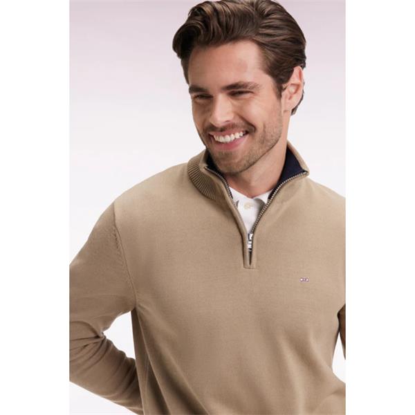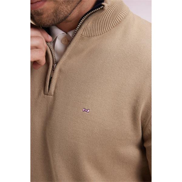 Eden Park Plain Heavy Cotton 1/4 Zip Knit Taupe