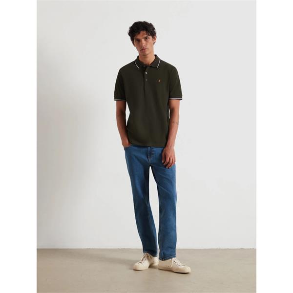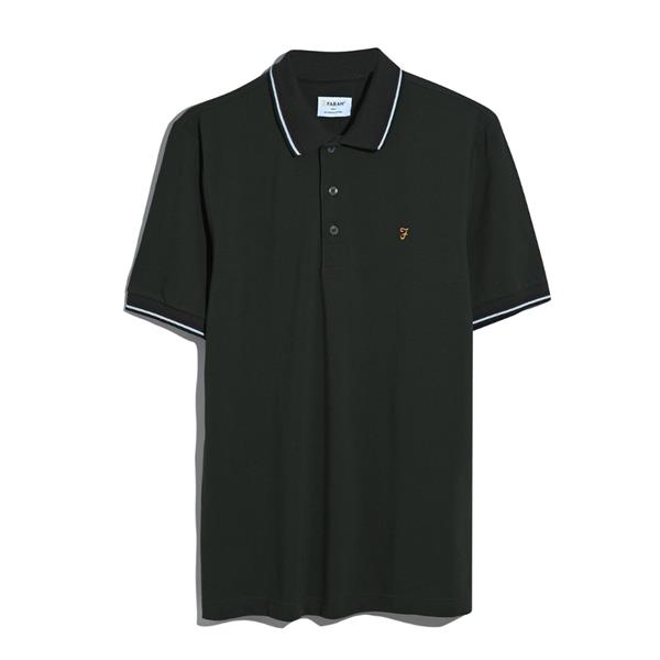 Elevate your casual wardrobe with the Farah Elton Gold Polo in Evergreen. This finely crafted polo shirt seamlessly blends comfort and style, making it an essential addition to your collection.