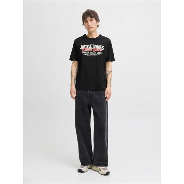 Introducing the Jack & Jones Script Logo Tee in Black—the epitome of simplicity and style. In the world of fashion, it does not get any simpler than a T-shirt. This versatile piece is designed to seamlessly integrate into your wardrobe, offering endless outfit possibilities.