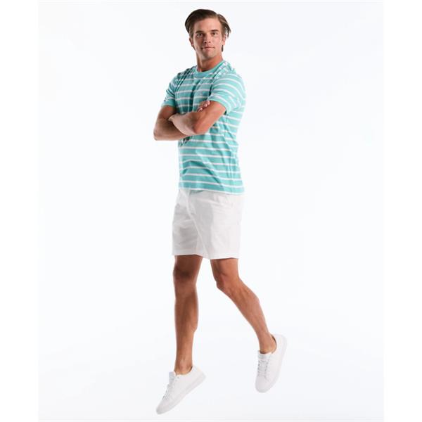 Introducing the Penguin Original Jersey Breton Stripe Tee in Aqua, a perfect blend of style and comfort. Crafted from 100% organic cotton, this tee is designed to be gentle on your skin while providing breathable comfort for all-day wear.