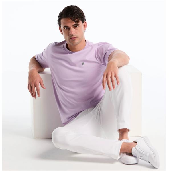 Choose the Penguin Pin Point Tee in Lavender for an effortlessly chic look while supporting sustainable fashion!