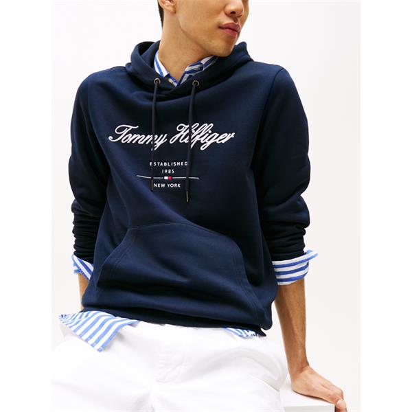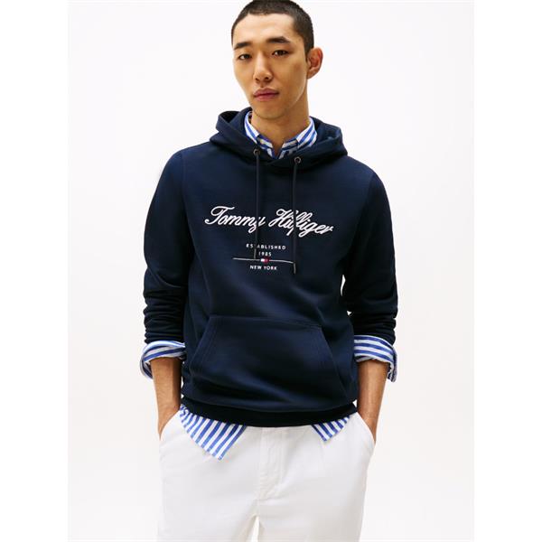 Tommy Hilfiger Embriodered Signature Logo Hoody Navy