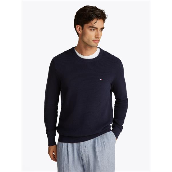 Tommy Hilfiger Textured Knit Cotton Crew Neck Jumper
