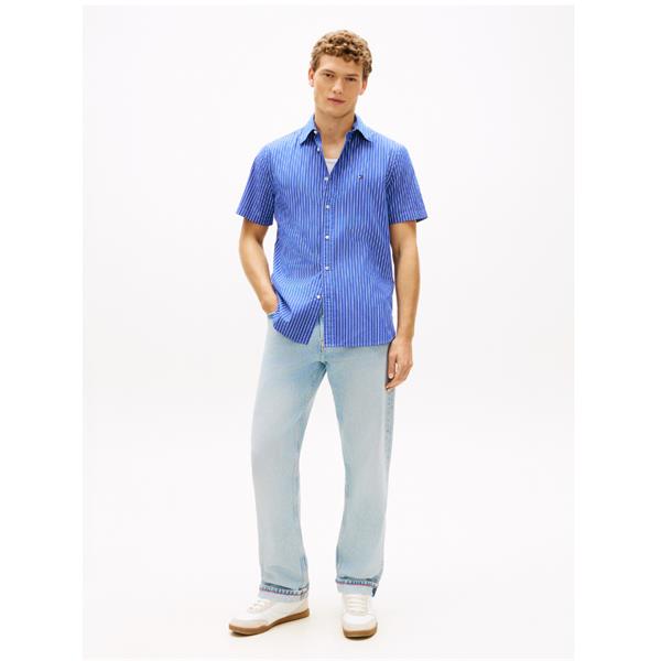 Discover the perfect blend of style and comfort with the Tommy Hilfiger Flex Stripe Poplin Short Sleeve Shirt in Wedge Blue. Crafted for the modern man, this shirt features a relaxed yet refined regular fit that pairs effortlessly with any casual or semi-formal ensemble.