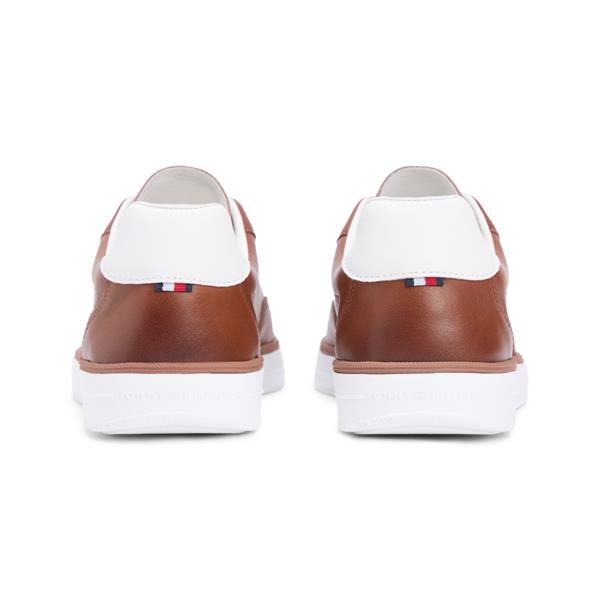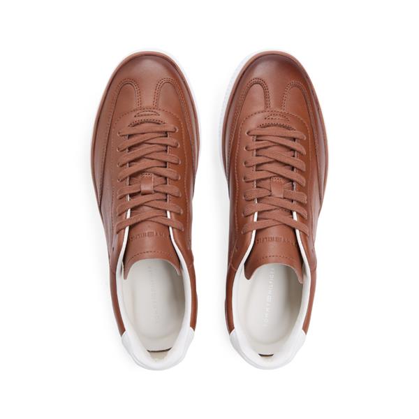 Tommy Hilfiger Luxe Metallic Logo Leather Trainers Cognac