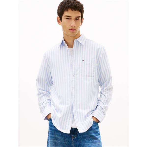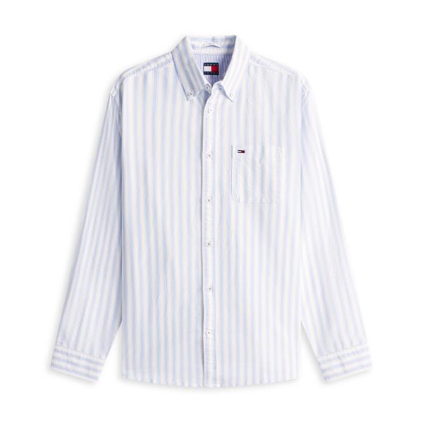 Achieve effortless sophistication with the Tommy Jeans Stripe Oxford Shirt Blue, perfect for both business casual and smart-casual settings.